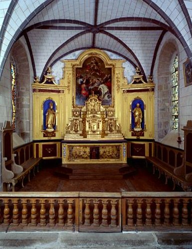 Ensemble homogène 4e quart 17e siècle réalisé par un atelier Limousin ; selon une inscription visible en rabattant le devant d'autel une réparation aurait été faite en 1860 par Lebrun et Bidout peintre et doreur ; malgré le manque de précision concernant cette restauration, l'autel-tabernacle-retable aurait été repeint et doré en 1860.