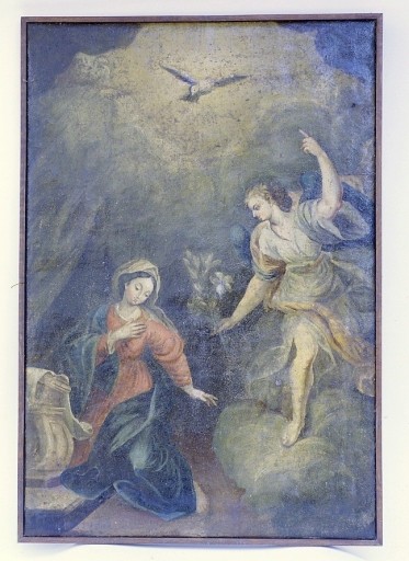 Copie inversée d'après Louis de Boulogne (original à Versailles, musée du Château, 1709). A rapprocher d'une peinture inventoriée dans l'église de Charcenne (canton de Marnay, Haute-Saône) par l'Inventaire de Franche-Comté, signée Ide Laumesnie, datant de 1727 et représentant également l'Annonciation.