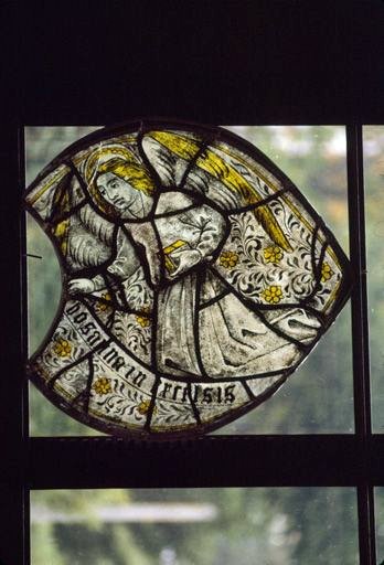verre transparent (coloré) : peint, grisaille sur verre ; plomb (réseau)