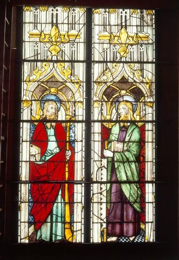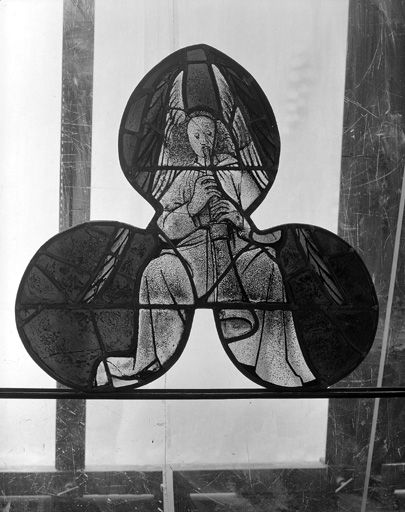 verre transparent (coloré) : peint, grisaille sur verre ; plomb (réseau)