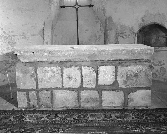 Table monolithe du Moyen Age posée sur un massif maçonné construit en 1965 lors de la déposition de l'ancien maître-autel