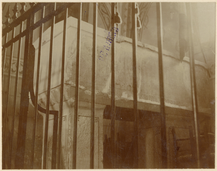 Sur l'arrêté de protection, il est mentionné : 'pierre, XIIe siècle'. Des travaux archéologiques ont permis de reconnaître inexacte cette attribution (lettre du Préfet de l'Ain du 23/07/1926). Pas de photo SPIM ; photo MPA sous un drap.