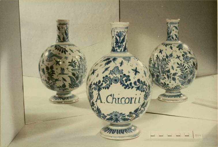 chevrette ; pilulier ; bouteille de pharmacie ; gourde ; pot-canon