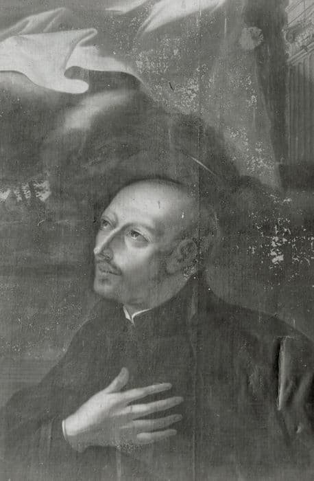 tableau : Dieu le père et le Christ portant la croix apparaissant à un saint