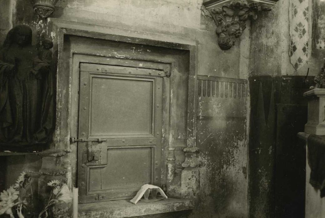 lieu de déplacement : Statue mise en sécurité aux Archives départementales de l'Ain suite à sa restauration de 1995 à août 2012 puis placée dans une niche sécurisée dans l'église de Flaxieu.