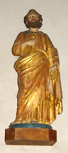 Saint Pierre tient les clefs dans la main droite et un livre sous le bras gauche.