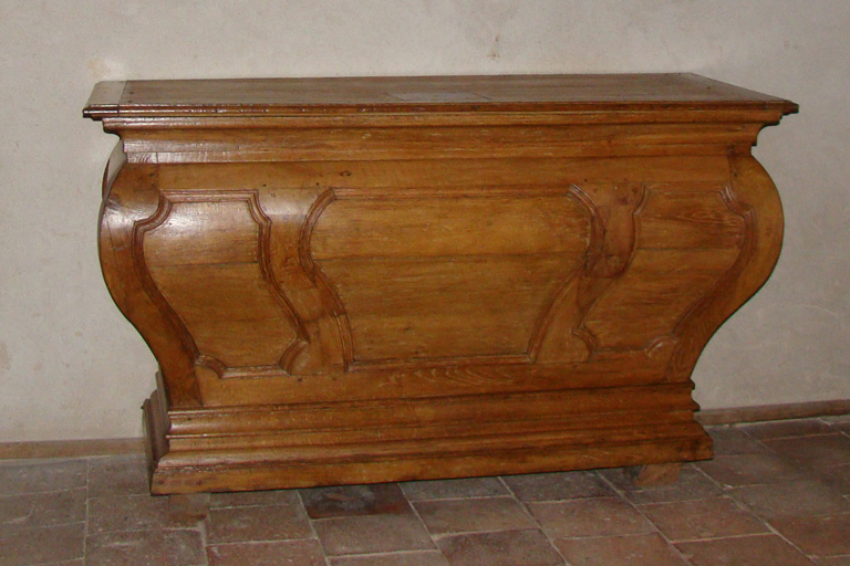 Autel galbé en bois ciré.