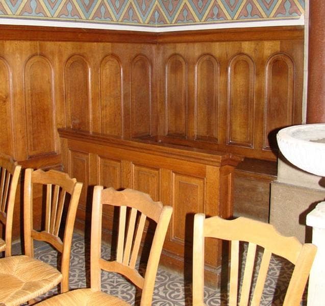 Lambris de revêtement ; paire de bancs ; paire d'agenouilloirs