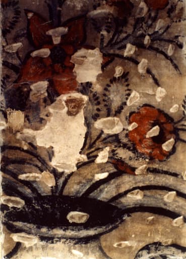 Peinture monumentale : décor floral ; croix de consécration ; litre funéraire