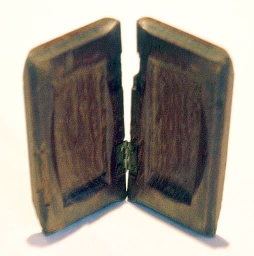 Objet de bois formé de 2 parties rectangulaires ouvrantes reliées par 2 charnières ; caisse de résonance creusée à l'intérieur.