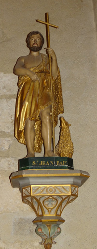 Saint Jean-Baptiste tient un bâton dans la main droite, mouton à ses côtés.