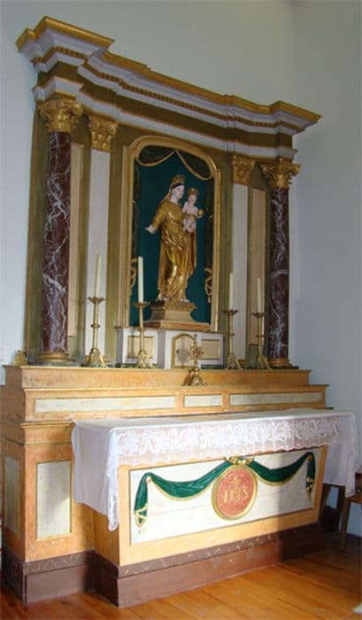 Autel ; retable ; gradin d'autel (2) ; statue de la Vierge