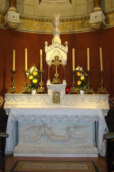 Autel, gradin d'autel, tabernacle et exposition de sainte Philomène
