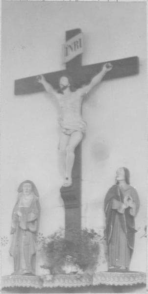 groupe sculpté : Christ en croix entre la Vierge et saint Jean