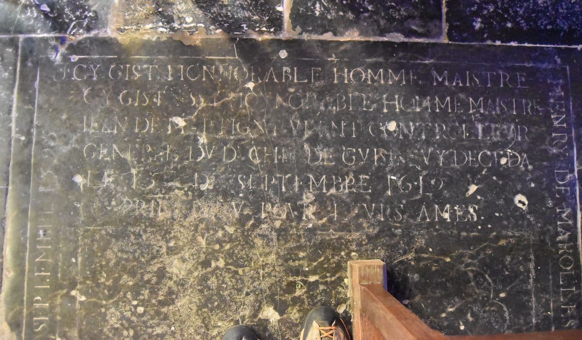 dalle funéraire d'Henry de Marolles, receveur du duché de Guise, de Claude Warnet, sa femme et de Jean de Martigny, contrôleur général du duché De Guise