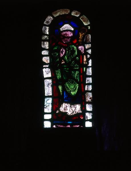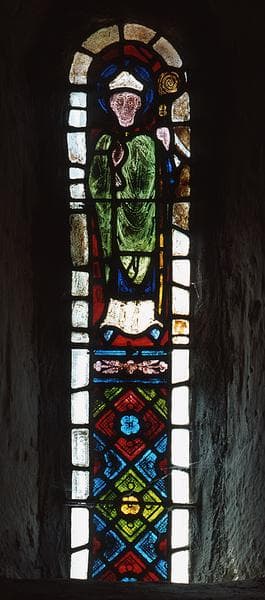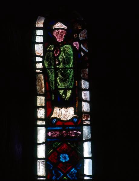 Ces vitraux représentent chacun un évêque debout, crosse en main.