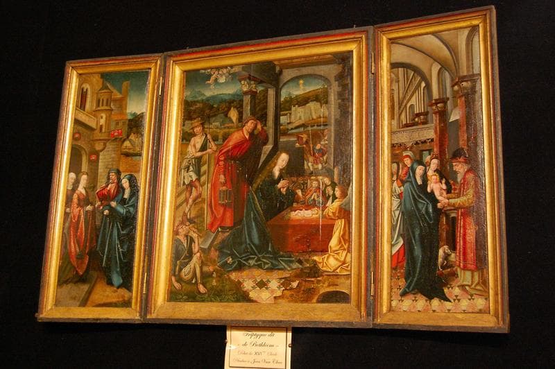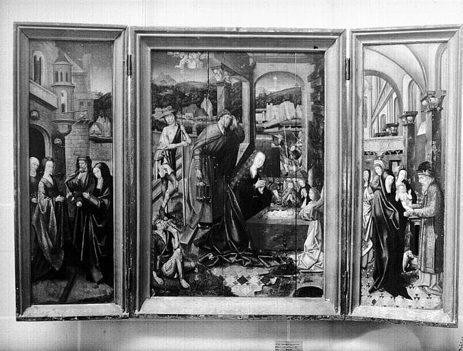 tableau (triptyque) dit de Béthléem : la Nativité, Adoration des bergers, Arrivée à Bethléem, la Circoncision