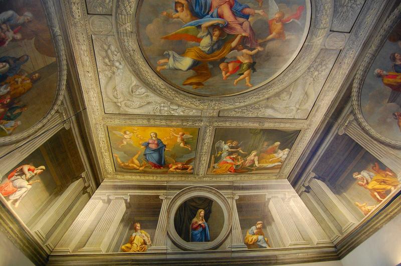 Les différents tableaux de ce décor développent un programme consacré à la Vierge, l'Assomption de la Vierge dans le tondo central, l'Immaculée conception, la Naissance de Marie, la Fuite en Egypte, la Dormition de Marie. Un second groupe est présenté sous forme de tableaux rapportés, insérés dans des architectures feintes, au niveau des voussures, la Vierge de l'Annonciation et le Christ de la Résurrection sont inscrits dans des médaillons. Dans deux ovales représentation des scènes de la Consécration de Marie au temple et la Présentation de Jésus au temple. Enfin, dans des niches peintes en trompe-l'oeil, huit allégories font référence aux vertus et qualités de la Vierge mais aussi à celles dont doivent faire preuve les visitandines : l'Espérance, la Foi, l'Innocence, la Prière, la Charité, la Religion, la Modestie et l'Etude.