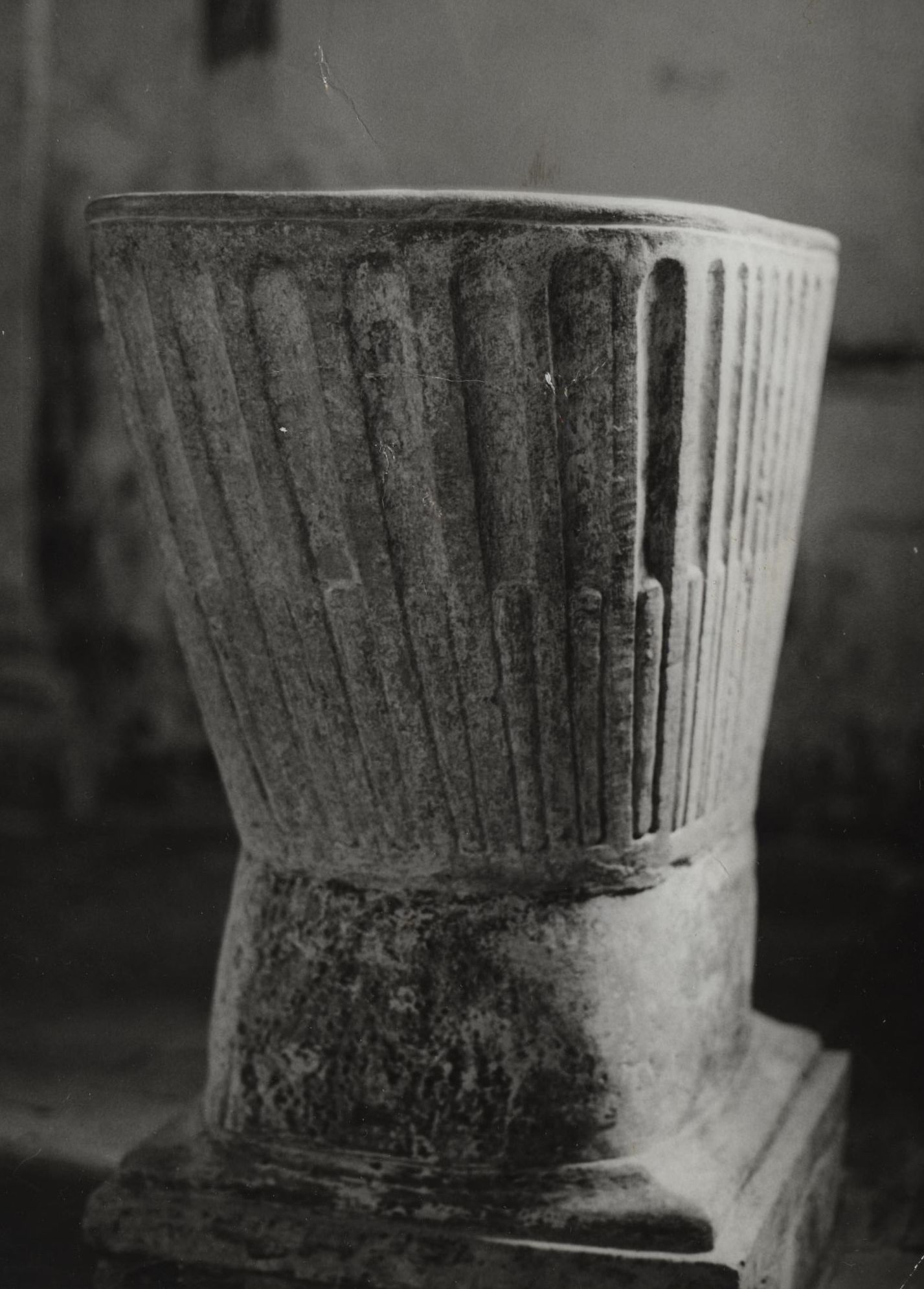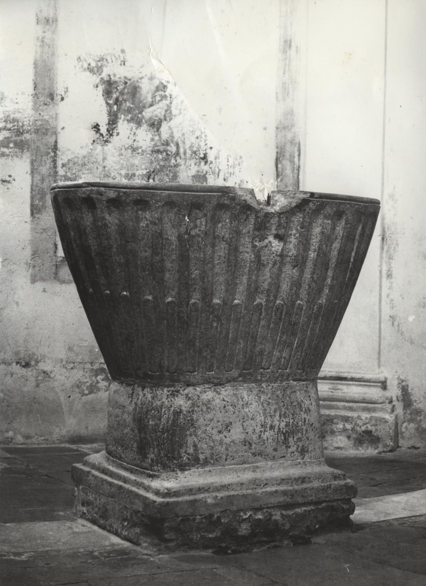 Cuve ovale sculptée de stries verticales.