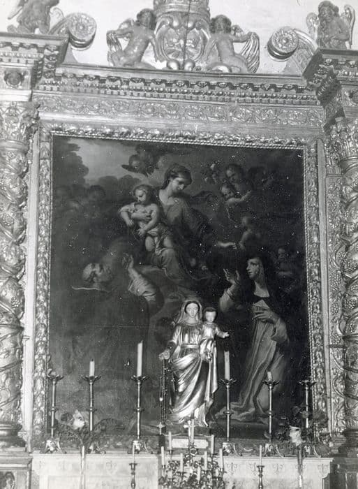 h = 350 ; la = 300 ; Dimensions du retable ; toile : h = 105, la = 56