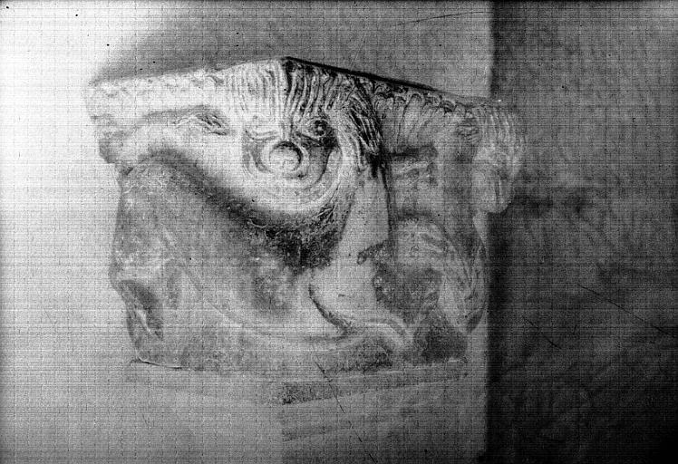 Sculpture rappelle la base des fonds baptismaux de Vermaus (Aisne).