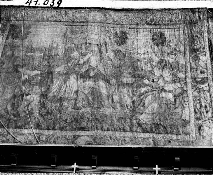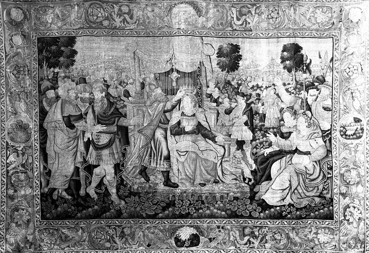 2 pièces murales : le Couronnement d'Esther, Elie et les prêtres de Baal dit aussi le prêtre va recueillir la cendre pour l'eau de purification