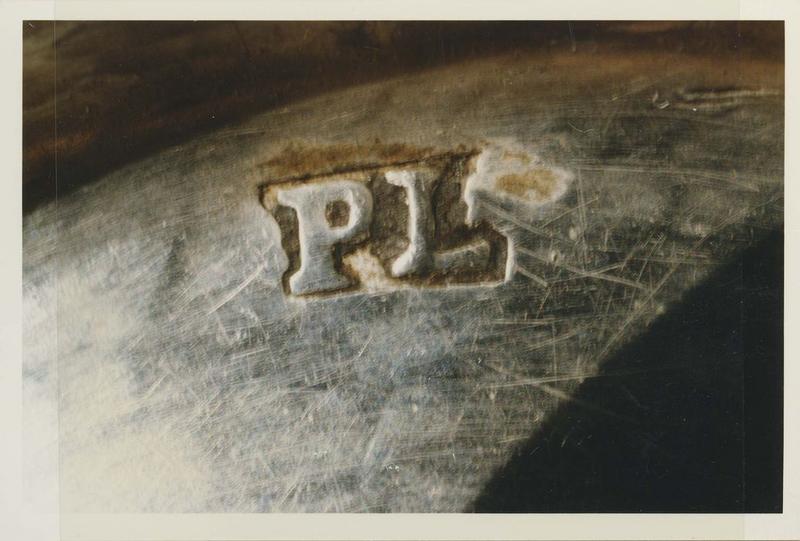Poinçon de maître (?) : PL. Armoiries : de la famille de Bologne (sur le pied).