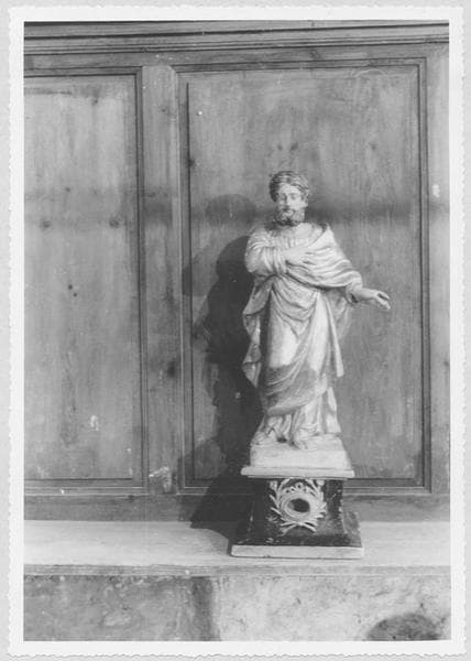 Il s'agit peut-être d'une représentation de saint Etienne, saint patron de l'église. Sa main gauche devait tenir, à l'origine, une pierre.
