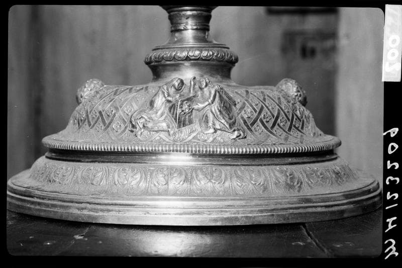 Décor sur la terrasse du pied : Annonciation au revers ; Assomption sur la face principale ; deux têtes d’anges ailés.
