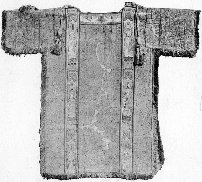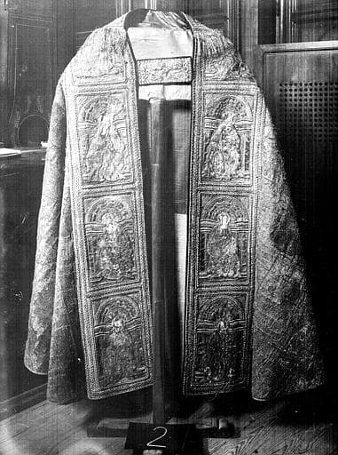 chasuble, 5 chapes, 2 dalmatiques, 2 étoles, 3 manipules et une bourse de corporal de Rostaing d'Ancezune, archevêque d'Embrun
