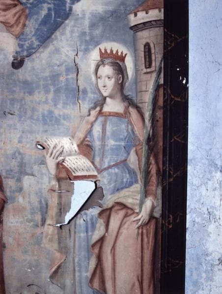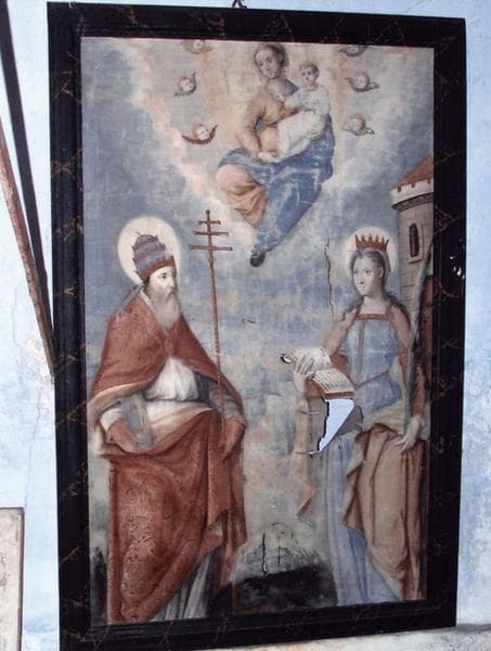 tableau et son cadre : la Vierge à l'enfant entre saint Sixte et sainte Barbe
