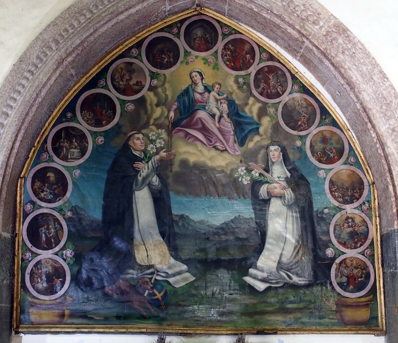 tableau et son cadre : Donation du rosaire à saint Dominique et sainte Catherine de Sienne