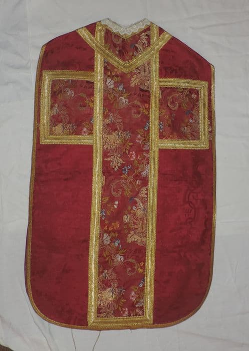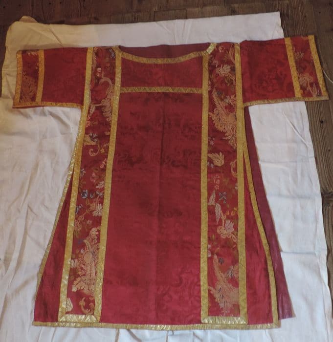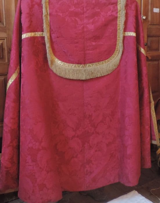 ensemble : chape, chasuble, 2 dalmatiques, étole, voile de calice