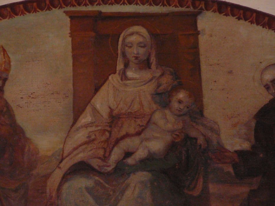 tableau : Vierge à l'Enfant, Marie Madeleine, saint Marcellin, saint Benoît, saint Laurent