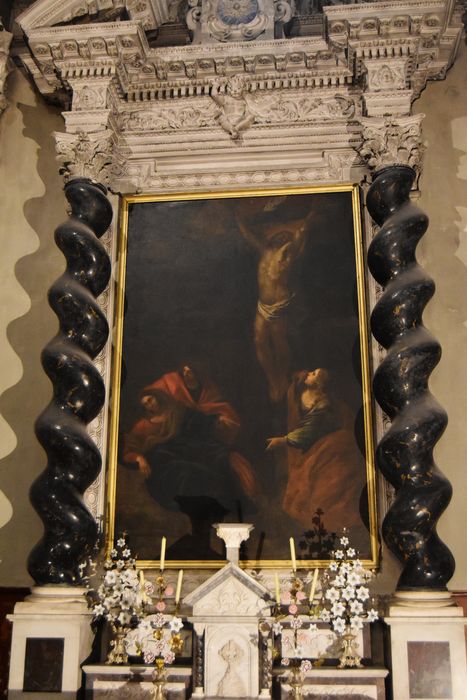 tableau : la Crucifixion avec la Madeleine, la Vierge et saint Jean