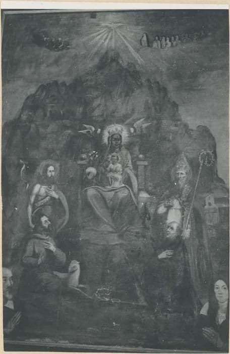 POP | Plateforme ouverte du patrimoinetableau, cadre : Vierge à l'Enfant entourée de divers saints et de deux donateurs dite la Vierge Noire