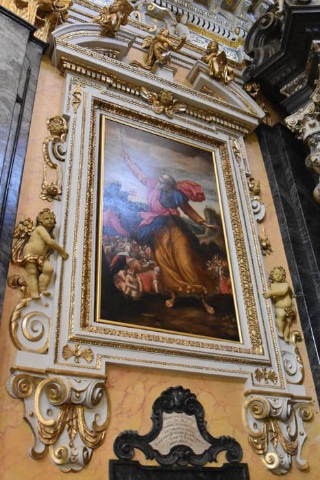 Toile avec encadrement en stuc polychrome et doré.