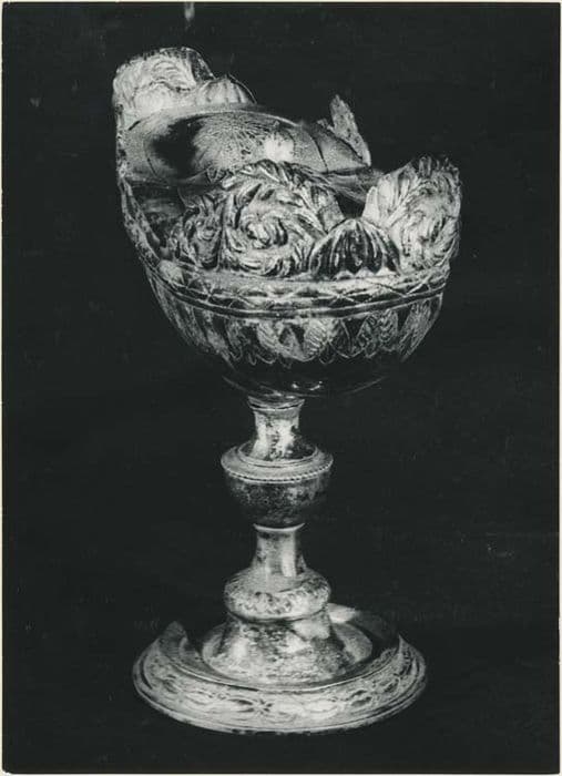 Pied circulaire décoré de frises de feuillages stylisés, noeud en balustre à ventre évasé décoré de même. Vaisseau de la navette allongé et décoré de même sur ses flancs et son couvercle. Le vaisseau est couronné en proue et en poupe de volutes feuillues enroulées en crosses.