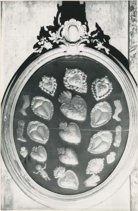 Ex-voto : quinze coeurs, quatre jambes, une main, une effigie de fillette.