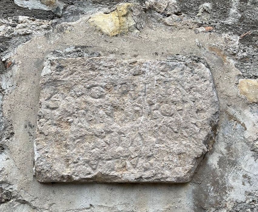 Monument funéraire. Formé de deux éléments : partie inférieure rectangulaire avec poignard à droite (l'inscription est devenue presque indéchiffrable) ; partie supérieure triangulaire, dont le sommet est brisé.