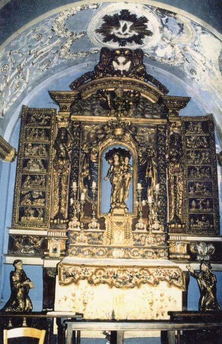 POP | Plateforme ouverte du patrimoineautel et retable de la Vierge-du-Rosaire, tabernacle, gradin, statue : Vierge à l'Enfant, cadre, 2 tableaux : les Mystères du Rosaire