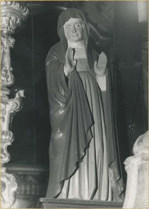 158 h ; 120 la (Dimensions du Christ) ; Dimensions de la Vierge et de saint Jean : h = 118, la = 40