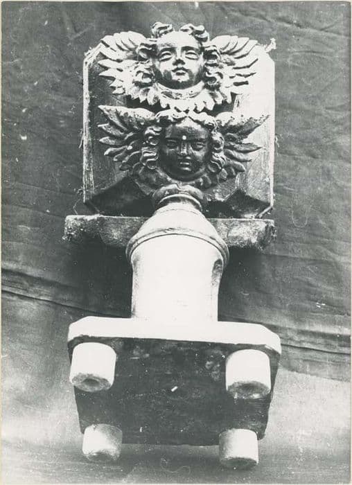 Le pied cylindrique, décoré de nichettes, repose sur un socle horizontal tétrapode. Le pupitre est orné extérieurement de deux têtes d'angelots sculptées.