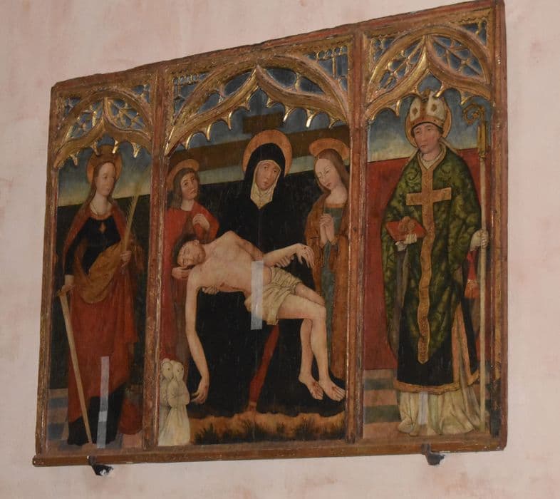 retable, 3 tableaux : Vierge de Pitié, entre saint Jean et sainte Madeleine, sainte Catherine et saint Nicolas
