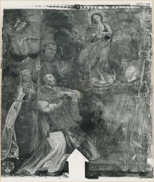 tableau : la Vierge de l'Immaculée Conception entourée de saint François d'Assise, sainte Catherine de Sienne et deux autres saints