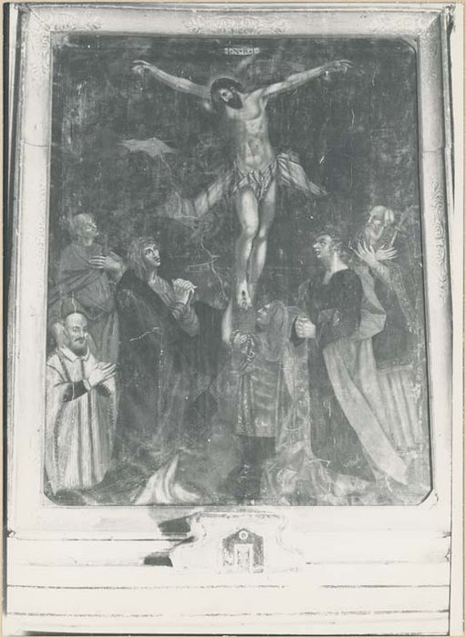 POP | Plateforme ouverte du patrimoineautel retable de la Crucifixion, tableau : la Crucifixion, avec donateurs et saints patrons