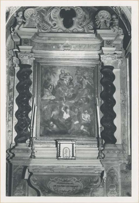 POP | Plateforme ouverte du patrimoineautel retable de la chapelle du Purgatoire, tableau : Saint Roch et saint Jean-Baptiste intercédant auprès de la Vierge à l'Enfant pour les Ames du Purgatoire