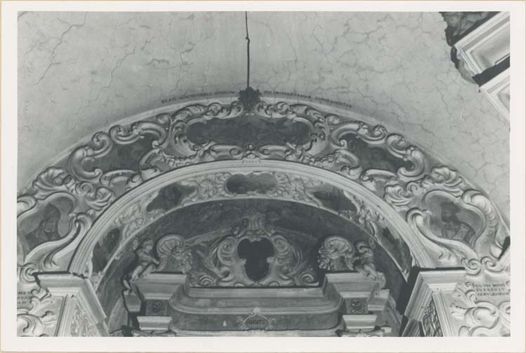 Autel et retable de la chapelle du Purgatoire, gypseries polychromes et sa toile. Le retable des Ames du Purgatoire occupe le fond de la chapelle latérale dont il surmonte l'autel tombeau, décoré d'un cartouche peint. Il se compose de deux colonnes torses (faux-marbre noir) et d'un entablement curviligne décoré de deux anagrammes mortuaires. Le fronton à volutes et le cartouche central sont ornés de coquilles, palmes, angelots, guirlandes, etc... Au centre la toile représente saint Roch (ou saint Jacques pélerin ?) et saint Jean-Baptiste, intercédant auprès de la Vierge à l'Enfant pour les Ames du Purgatoire. L'extrados et l'intrados de l'arc de la chapelle et des piédroits qui le supportent sont décorés : dix-huit médaillons et six cartouches de gypserie.