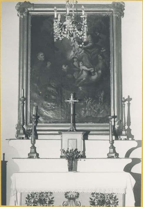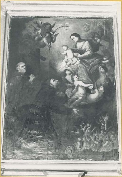 tableau, cadre : l'Intercession de saint François et de saint Nicolas de Tolentino en faveur des Ames du Purgatoire