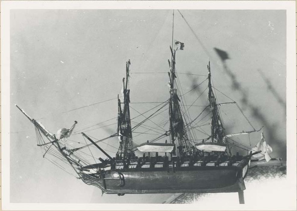Ex-voto : corvette portant une inscription.